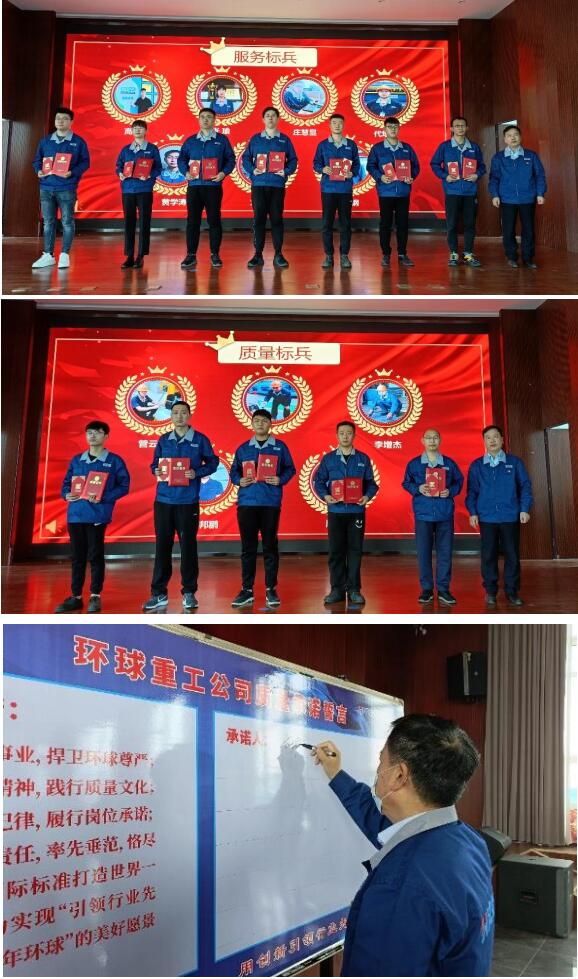 大會宣讀了《環(huán)球重工公司關(guān)于表彰“服務標兵”、“質(zhì)量標兵”的決定》。環(huán)球重工總經(jīng)理劉增喜為獲得表彰的人員頒發(fā)榮譽證書和 獎金紅包。