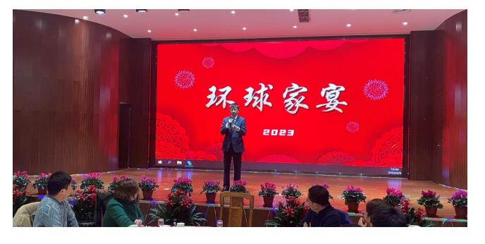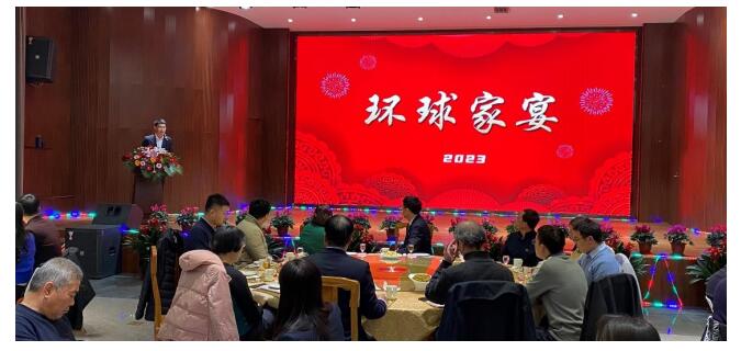 春回大地,萬象更新。2 月 4 日,正月十四,環(huán)球人共同的節(jié)日 ——?jiǎng)?chuàng)新年會(huì)暨環(huán)球家宴在青島環(huán)球集團(tuán)總部多功能廳舉行,集團(tuán)董 事長(zhǎng)管陽春出席并致辭。來自集團(tuán)各公司的營(yíng)銷團(tuán)隊(duì)、技術(shù)團(tuán)隊(duì)、中 層干部團(tuán)隊(duì)、在崗勞模,2022 年度集團(tuán)標(biāo)兵、優(yōu)秀班組長(zhǎng)歡聚一堂, 共慶佳節(jié)。