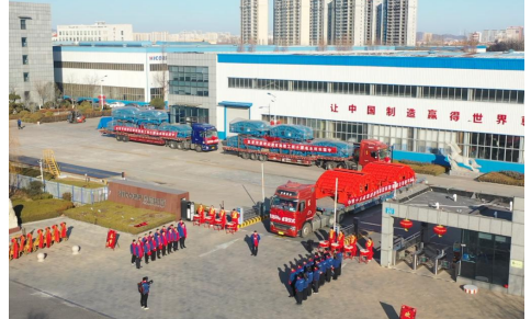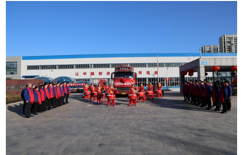 九點十八分,張總下達了發(fā)車指令!伴隨著三十八聲禮炮齊鳴和激昂的鑼鼓聲,一輛輛裝載著高精管片模具、風電混塔模具等產(chǎn)品的貨車,滿載著客戶的信任,緩緩駛出廠區(qū)大門,“奔赴”客戶現(xiàn)場。