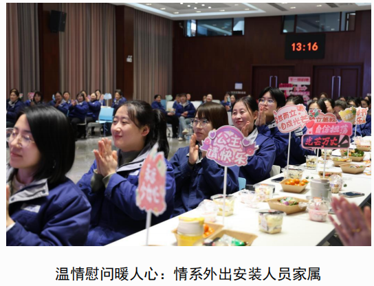 為弘揚(yáng)“家庭支持企業(yè)、企業(yè)關(guān)愛員工”的理念,3 月 5 日至 6日,集團(tuán)工會組織各公司慰問團(tuán)隊(duì)深入一線,為外出安裝項(xiàng)目的職工家屬送上鮮花及慰問禮。每到一戶,慰問人員都詳細(xì)介紹外出安裝項(xiàng)目的進(jìn)展,并向家屬們致以崇高敬意,感謝他們長期以來的理解與支持?;顒庸不菁奥毠ぜ覍?50 余戶,通過面對面的交流,進(jìn)一步增強(qiáng)了企業(yè)與職工家庭的凝聚力。