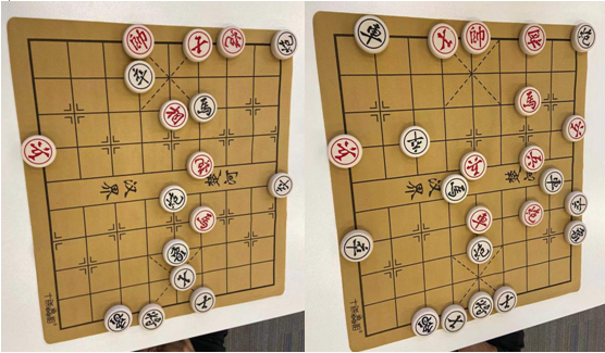 比賽中,各選手們嚴(yán)格遵守“友誼第一、比賽第二”的原則,尊重對手、服從裁判、認(rèn)真參賽,選手們在棋局中睿智的思考,在行棋中三思而慎行,在博弈中結(jié)交摯友,落子聲此起彼伏,時有“金戈鐵馬掃千軍,羽扇綸巾棋人生”的氛圍。最后的決賽將比賽推向高潮,第一局黑方卒六進(jìn)一,馬鎖雙邊,紅帥無路可走,黑方先下一城;第二局一開始便硝煙彌漫,最終黑方炮四平一,抽車將軍,紅方損失慘重,再無回天之力。