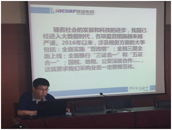 集團財務部徐經理對財務知識、發(fā)票、承兌、預付款等進行了詳細講解,徐經理指出隨著社會發(fā)展和科技的進步,我國已進入大數據時代,各項監(jiān)管措施越來越嚴謹。2016年以來,涉及稅務方面的大事包括:全面實施“營改增”;金稅三期全面上線;全面推行“三證合一”和“五證合一”;國稅、地稅、公安深度合作……圍繞發(fā)展趨勢,對我們的采供業(yè)務提出了更高的要求,要求更加的嚴謹和規(guī)范。