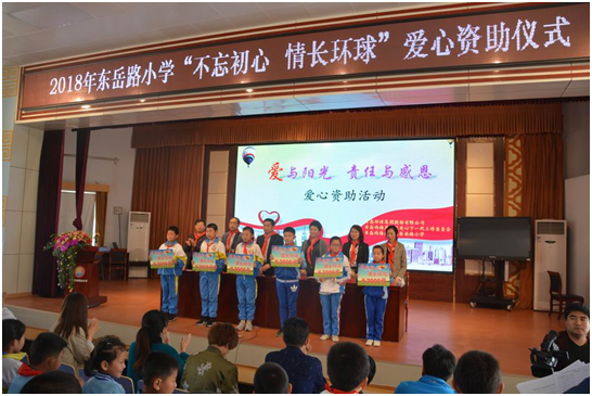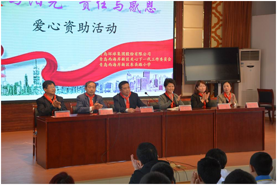 從關(guān)工委了解到,在黃島區(qū)還有很多小學(xué)生因?yàn)榧彝ピ蛴绊懙綄W(xué)業(yè),不能安心的上學(xué),這其中就有東岳路小學(xué)的學(xué)生。得知這一情況,環(huán)球集團(tuán)領(lǐng)導(dǎo)班子成員在集團(tuán)中層管理干部中發(fā)起倡議,在每年正月初六的集團(tuán)全體中層干部會(huì)議上組織捐款活動(dòng),募集愛心捐款,集團(tuán)等額捐助,促成了每年的“不忘初心,情長環(huán)球”的愛心捐助活動(dòng),用環(huán)球人的力量,獎(jiǎng)學(xué)助學(xué),獎(jiǎng)勵(lì)、幫助品學(xué)兼優(yōu)的孩子,回饋社會(huì),奉獻(xiàn)愛心。