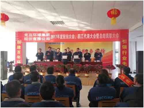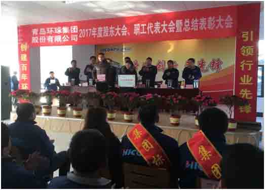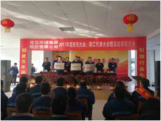 青島環(huán)球集團(tuán)股份有限公司2017年度股東大會(huì)、職工代表大會(huì)暨總結(jié)表彰大會(huì)于2018年2月11日上午在集團(tuán)職工餐廳隆重召開。來自集團(tuán)各公司、事業(yè)部的股東和職工代表共計(jì)221人參加了此次會(huì)議。