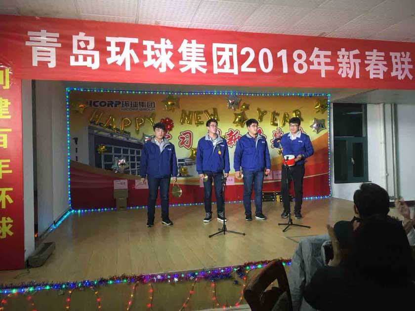 在晚會(huì)中集團(tuán)團(tuán)委的年輕人帶來了多個(gè)節(jié)目,既有青春洋溢、喜慶歡快的舞蹈《開門紅》,又有說學(xué)逗唱、生動(dòng)活潑的單口相聲《開張大吉》,還有歡快動(dòng)感、激情滿懷的歌曲《恭喜發(fā)財(cái)》、《向天再借五百年》。來自紡機(jī)公司技術(shù)團(tuán)隊(duì)自編、自導(dǎo)、自演的三句半《擰成一股繩,啟程新時(shí)代》,訴說了環(huán)球人身邊事,接地氣、話家常、很溫暖、振人心,細(xì)數(shù)了2017年度集團(tuán)各行各業(yè)的收獲,暢談了2018年對(duì)美好未來的期待與展望,引起大家共鳴,贏得了陣陣掌聲。